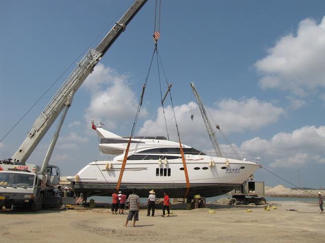 2011年8月17日,我司将新大陆公司62呎“公主”号游艇在平潭码头吊上水做年检保养后于8月23日放入水面。