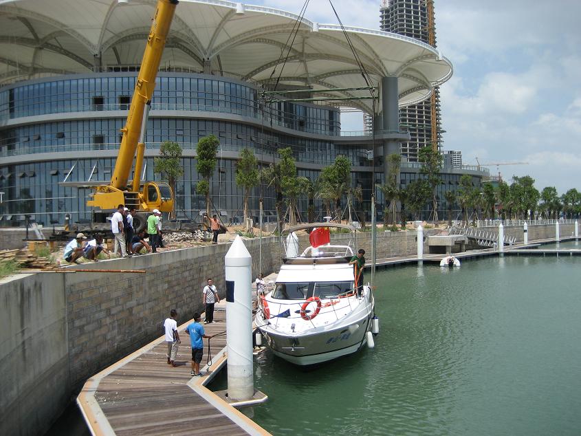2011年9月14日,我司将香山游艇4080号吊装上水保养。