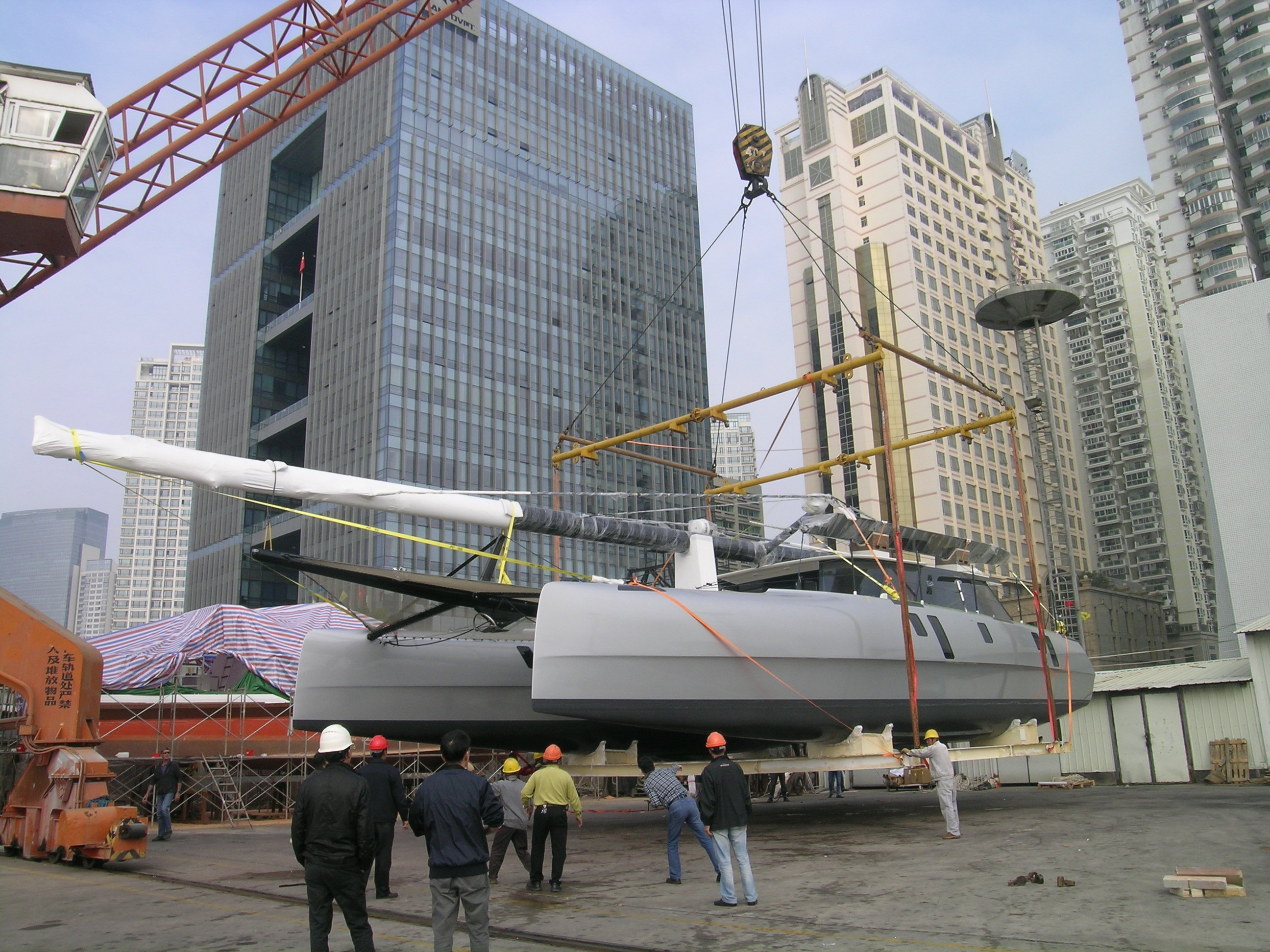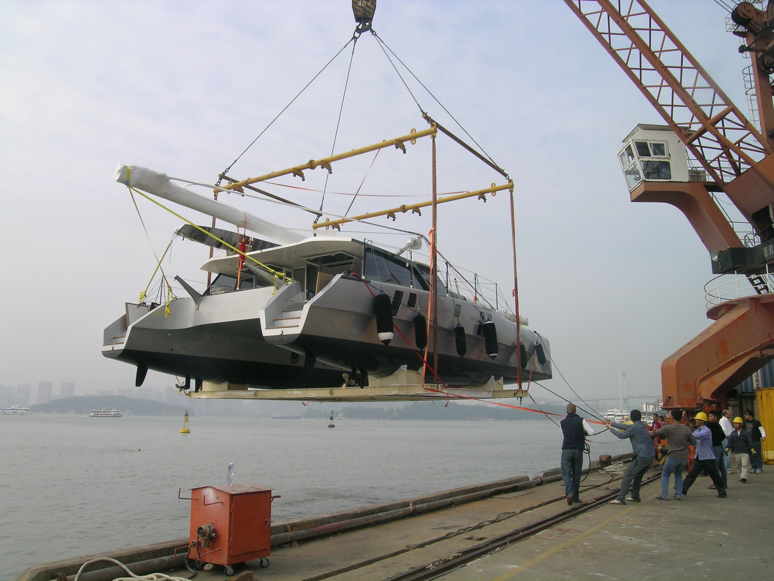吊运双体帆船至同益码头
