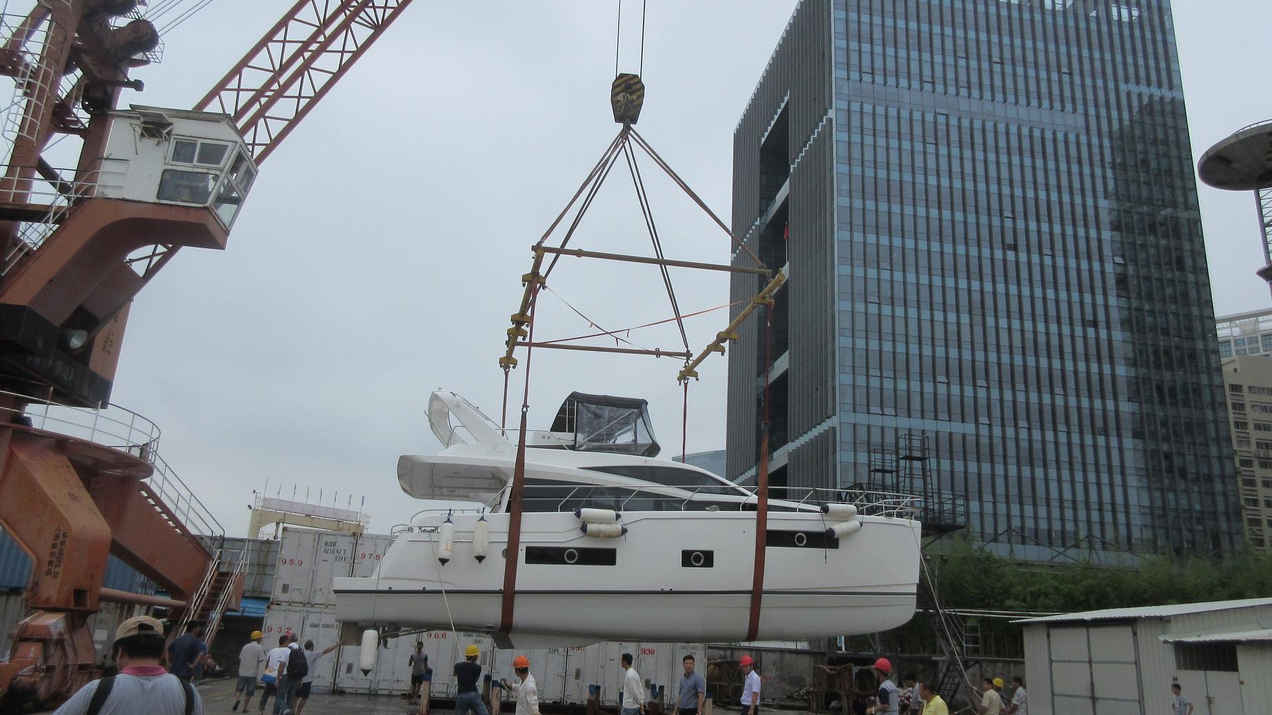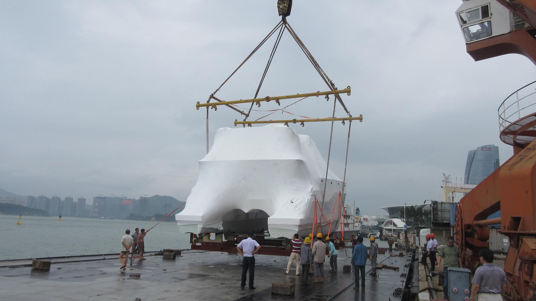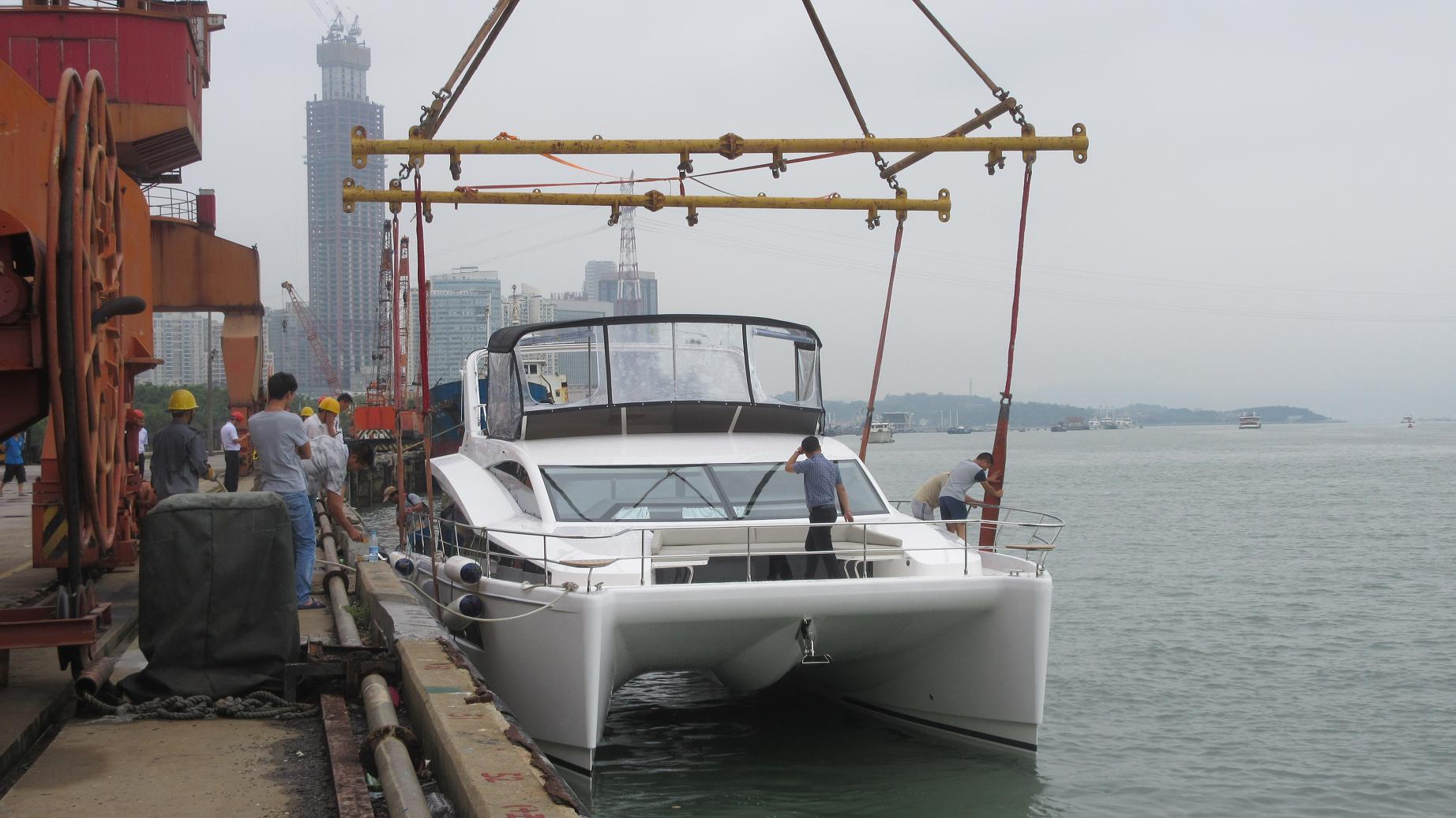 2015年9月1日,我司在同益码头吊装哈德森48呎双体帆船。