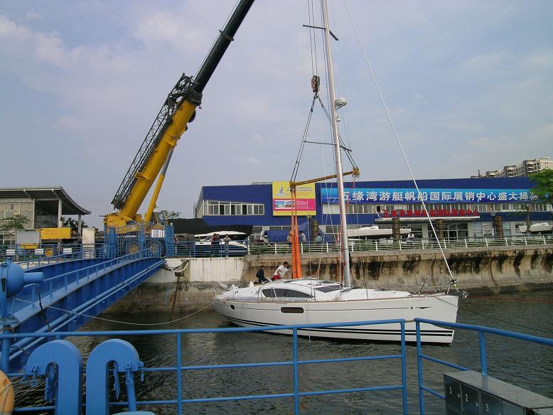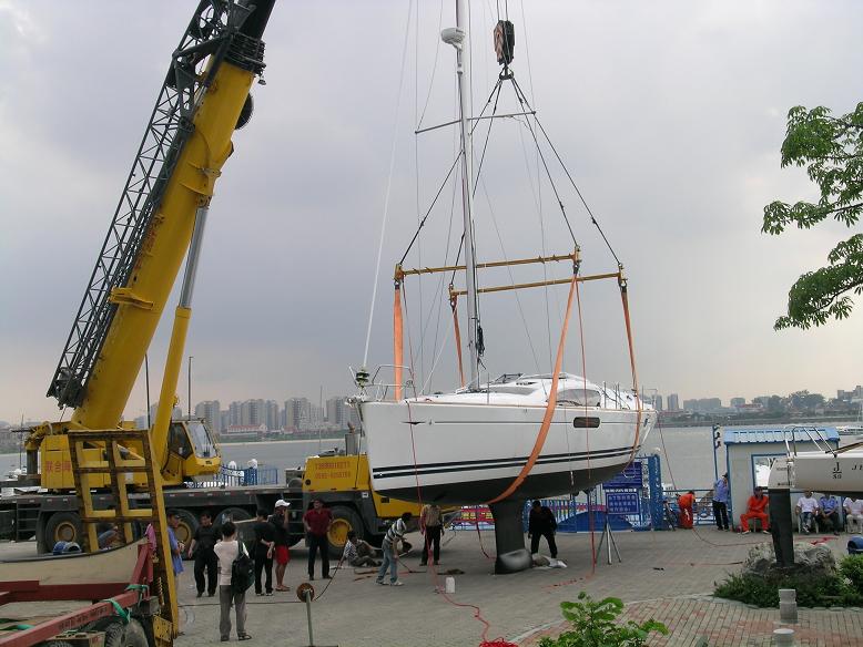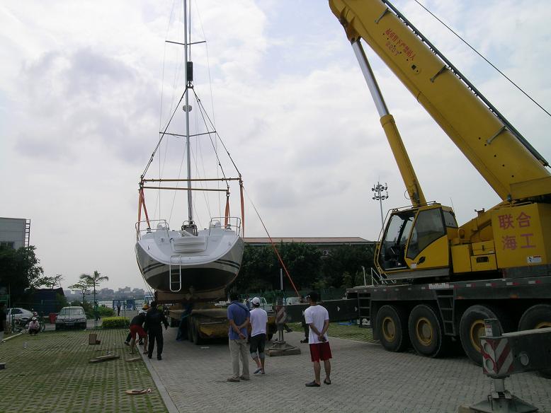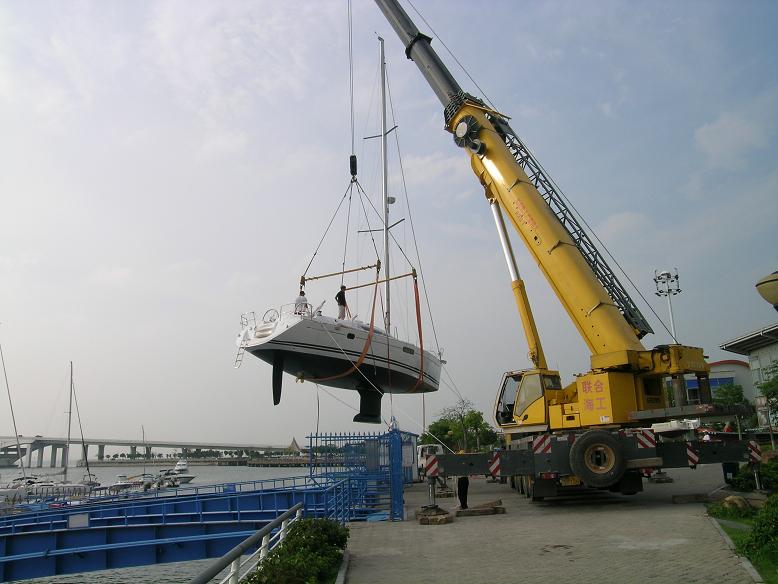 2010年5月20日,我司将飞驰公司“法国亚诺”46呎帆船由厦门五缘湾码头组装并吊入水面。