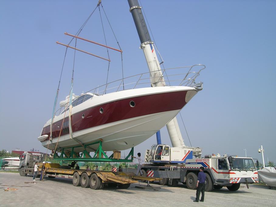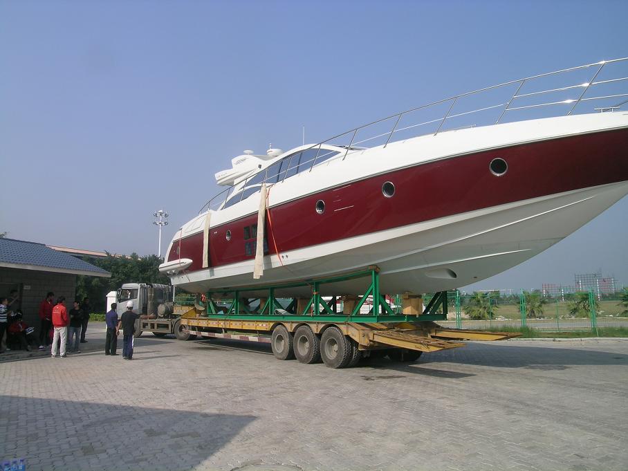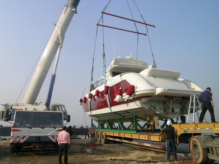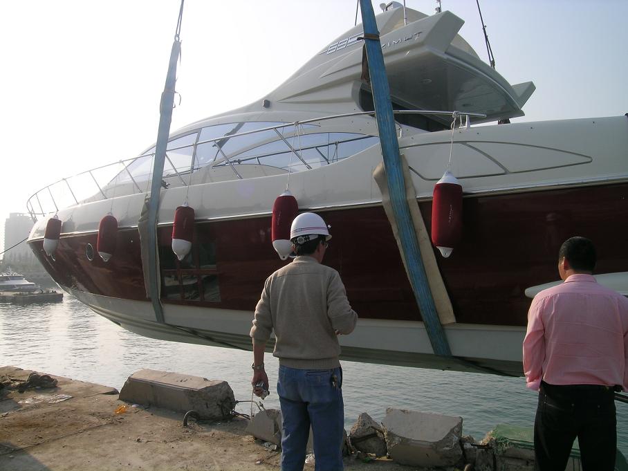 阿兹姆公司68呎游艇从五缘湾保税仓库经五通码头放入水面。
