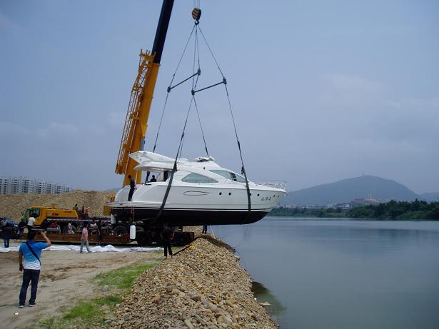 2011年6月2日,我司将南安泛华集团购置的杰腾48呎游艇放入南安福溪水面。